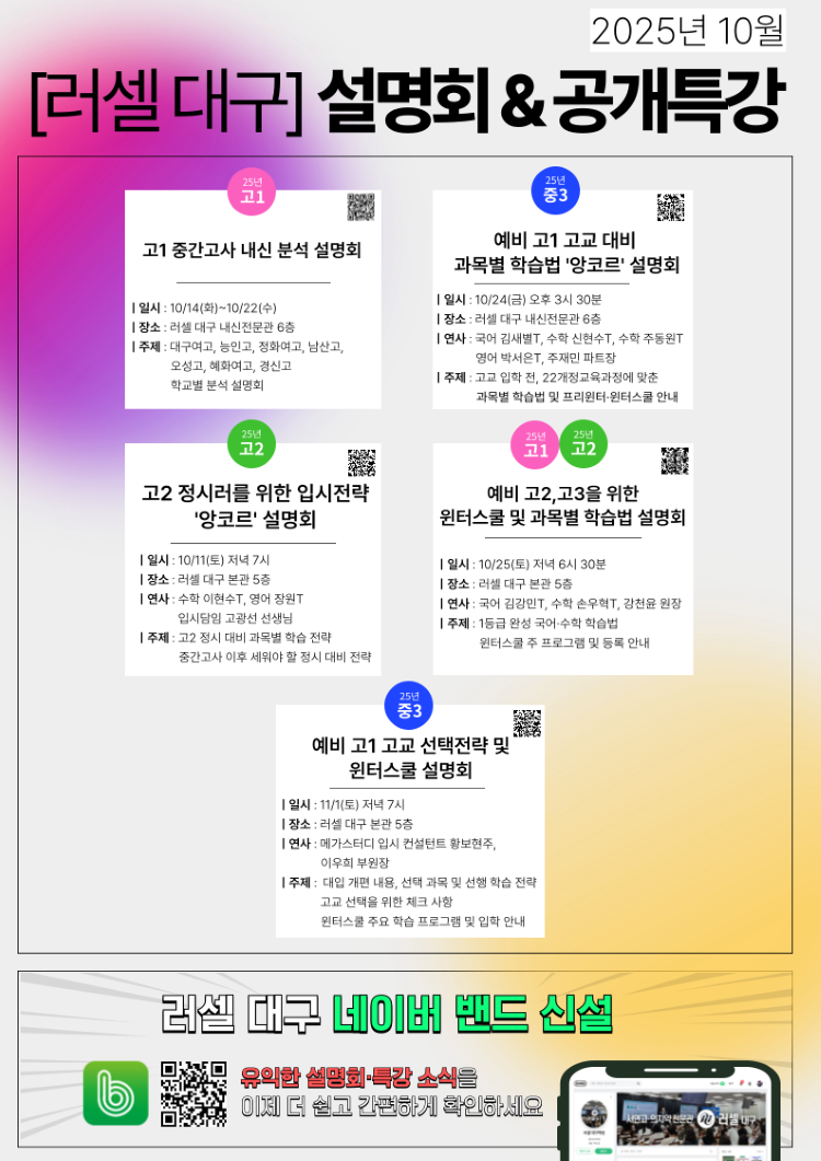 ¡á ·¯¼¿ ´ë±¸ 10~11¿ù ¼³¸íȸ¡¤°ø°³Æ¯°­ ÀÏÁ¤ ¾È³» ¡á (10/9 ±âÁØ)
