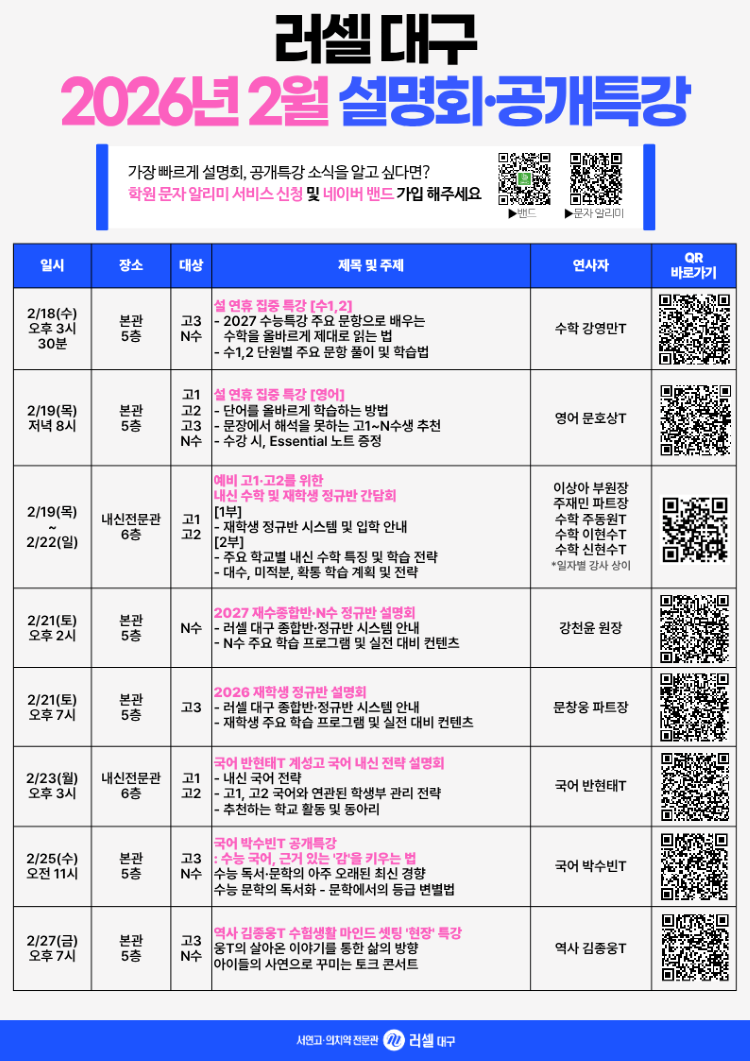 | ¡á ·¯¼¿ ´ë±¸ 2¿ù ¼³¸íȸ¡¤°ø°³Æ¯° ÀÏÁ¤ ¾È³» ¡á (2/12 ±âÁØ) | |||