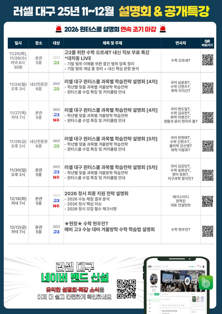 ¡á ·¯¼¿ ´ë±¸ 11~12¿ù ¼³¸íȸ¡¤°ø°³Æ¯°­ ÀÏÁ¤ ¾È³» ¡á (11/25 ±âÁØ)