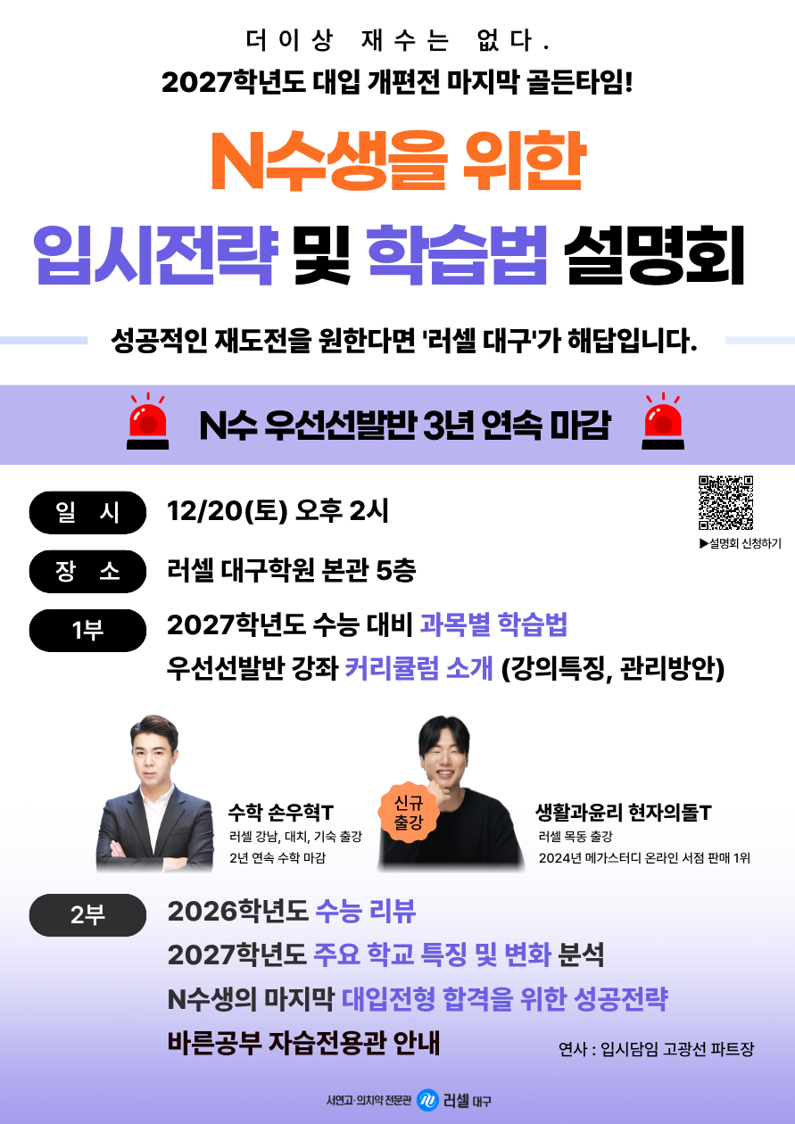 ¡¼26³â N¼ö¡½ N¼ö»ýÀ» À§ÇÑ ÀÔ½ÃÀü·« ¹× ÇнÀ¹ý ¼³¸íȸ (12/20)