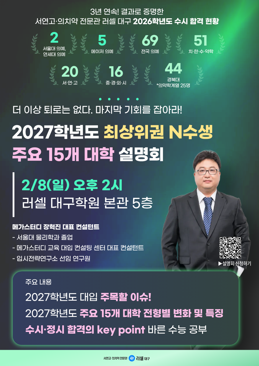¡¼N¼ö¡½ 2027Çг⵵ ÃÖ»óÀ§±Ç N¼ö»ý ÁÖ¿ä 15°³ ´ëÇÐ ¼³¸íȸ (2/8)