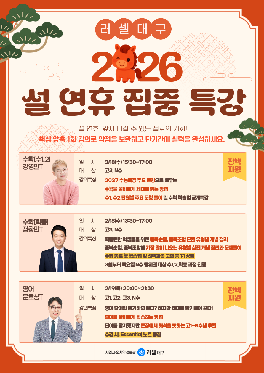 ¸Þ°¡½ºÅ͵𠷯¼¿ °øÁö»çÇ×ÀÔ´Ï´Ù. ÇпøÀÇ »õ·Î¿î ¼Ò½ÄÀ» °¡Àå »¡¸® ¸¸³ªº¸¼¼¿ä!