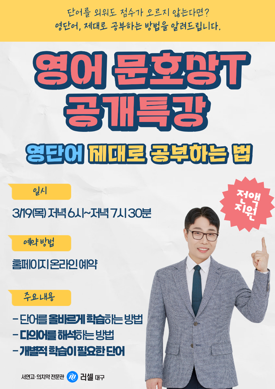 | ¡¼°í3,N¼ö¡½ ¿µ¾î ¹®È£»óT °ø°³Æ¯° - ¿µ´Ü¾î Á¦´ë·Î °øºÎÇÏ´Â ¹ý (3/19) | |||